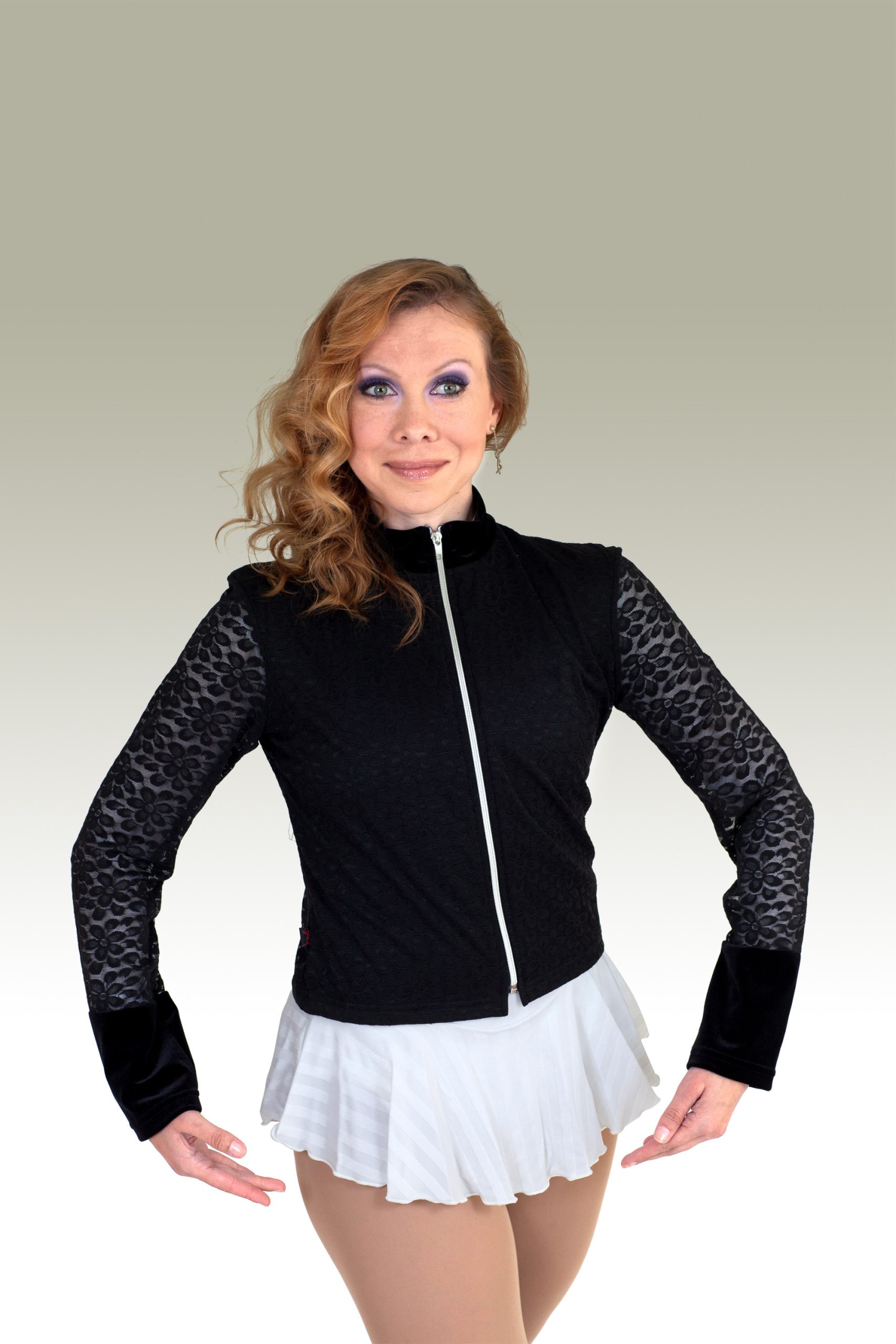 Editor’s Note: This luxurious crushed velvet and lace jacket was inspired by and named after OKSANA BAIUL® beloved mother Marina. Very comfortable and super stylish!